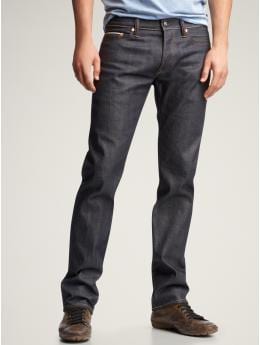 - Elevated jeans, made of premium denim in a rigid rinsed selvage.